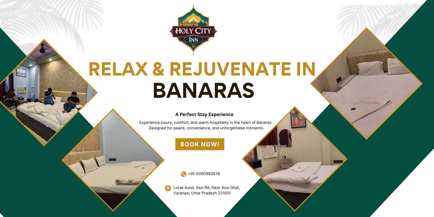 Conveniently located at Lorark Kund on Assi Road, just steps away from the iconic Assi Ghat, Holy City Inn offers an ideal stay for travelers, families, and pilgrims visiting Varanasi. Our hotel is perfectly situated in the heart of the city's spiritual center, providing easy access to the holy Ganges and the vibrant local culture.